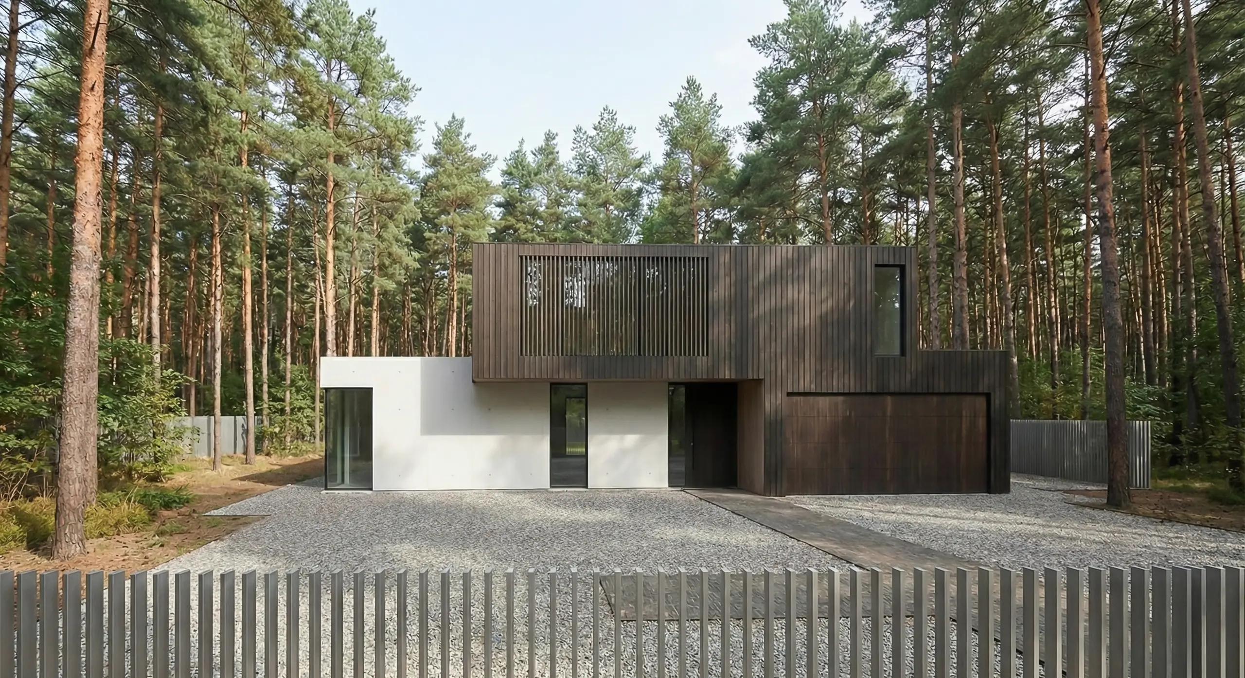 Minimalistyczna rezydencja w leśnej przestrzeni